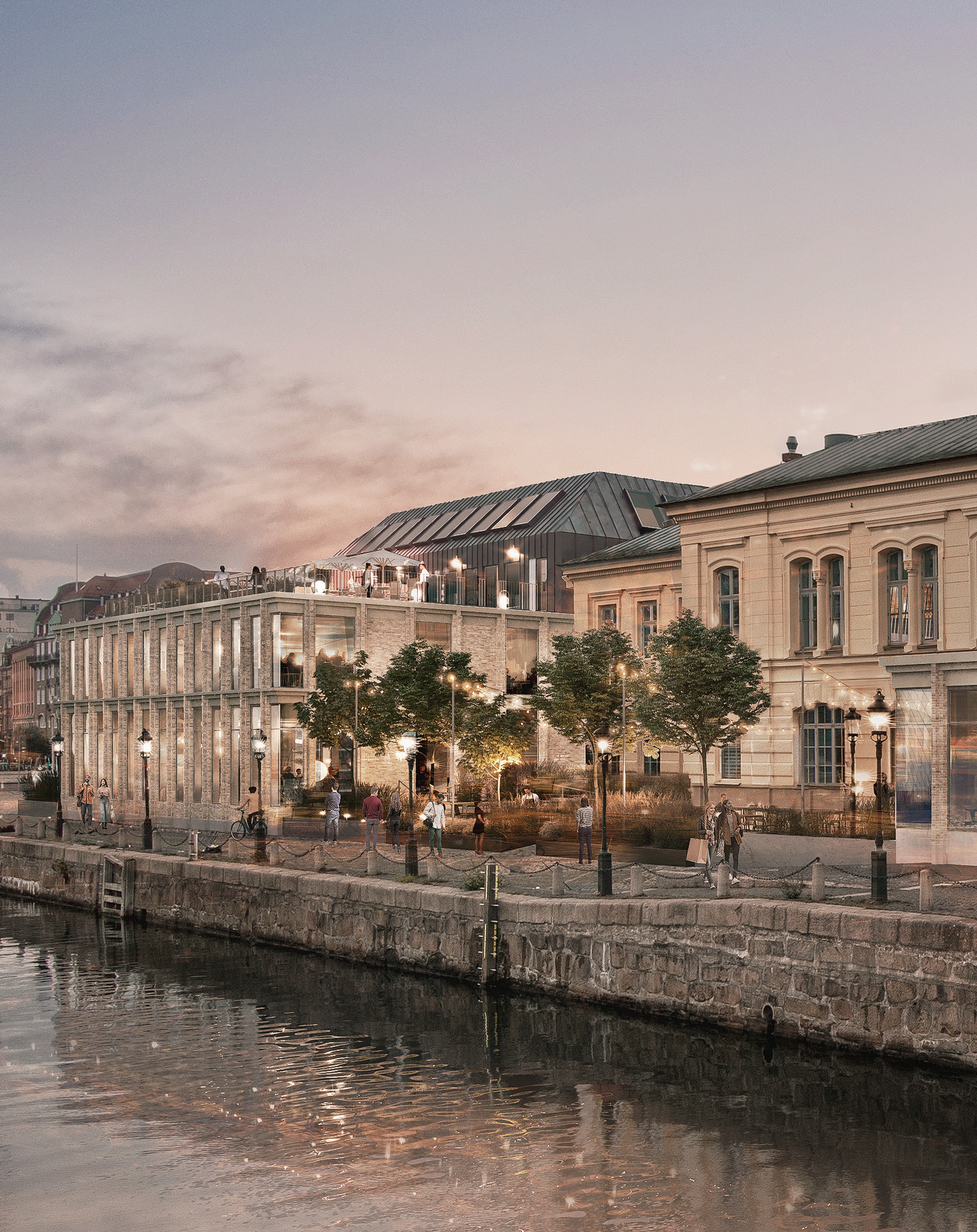 Den föreslagna renoveringen inrymmer även en ny konferensanläggning, en restaurang på bottenvåningen samt takterrasser och underjordisk parkering för cyklar och bilar. Längs med kanalen uppförs en ny uteservering som delas mellan restaurangen och konferensanläggningen.