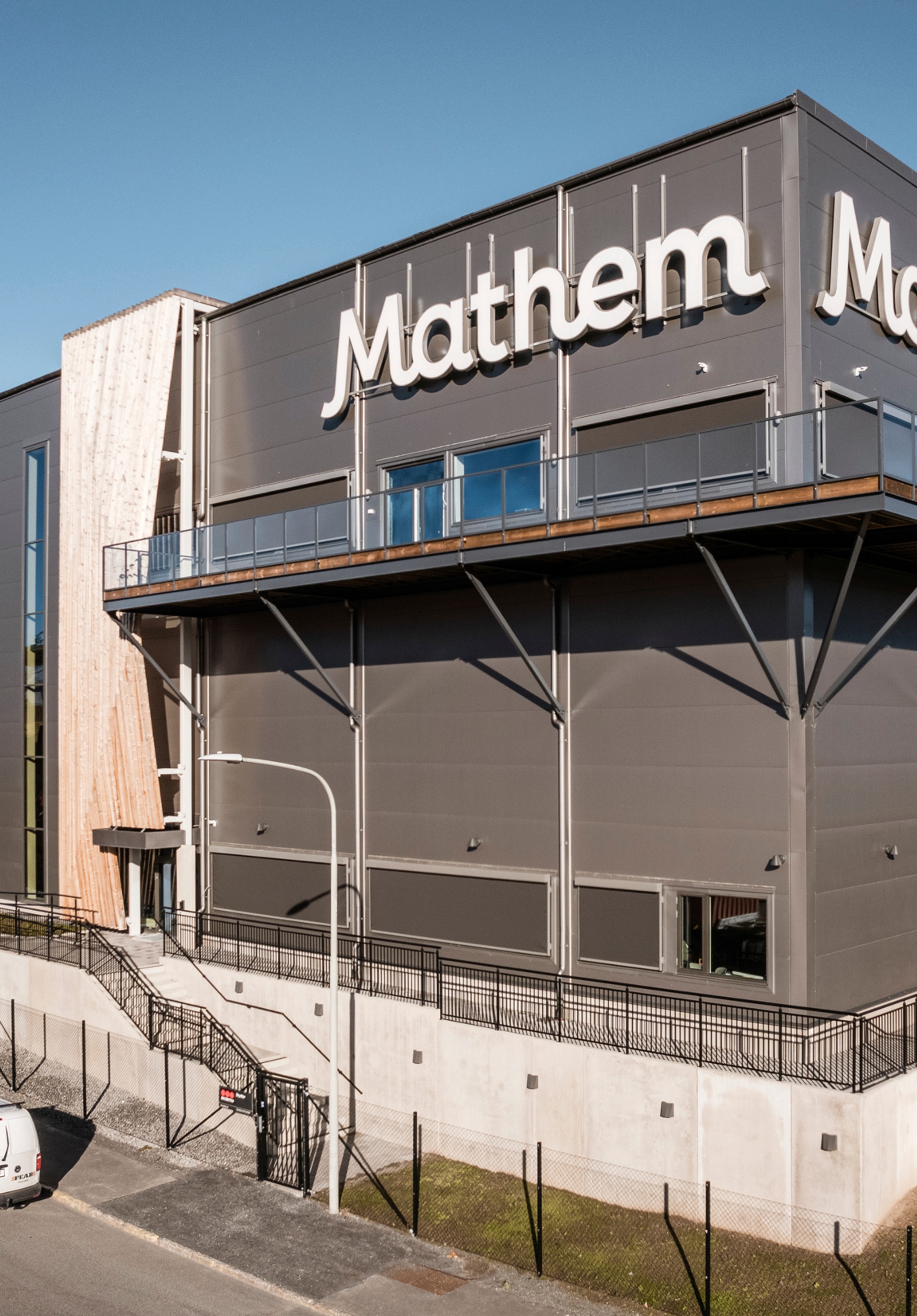 Med Mathems logistikcentrum i Larsboda skapas en arbetsplats för 1000 personer med kontor, lager, omklädning, gym och personalrestaurang. I direkt anslutning har ett p-hus på 9 000 kvm byggts med ett stort antal laddstolpar för Mathems leveransfordon.